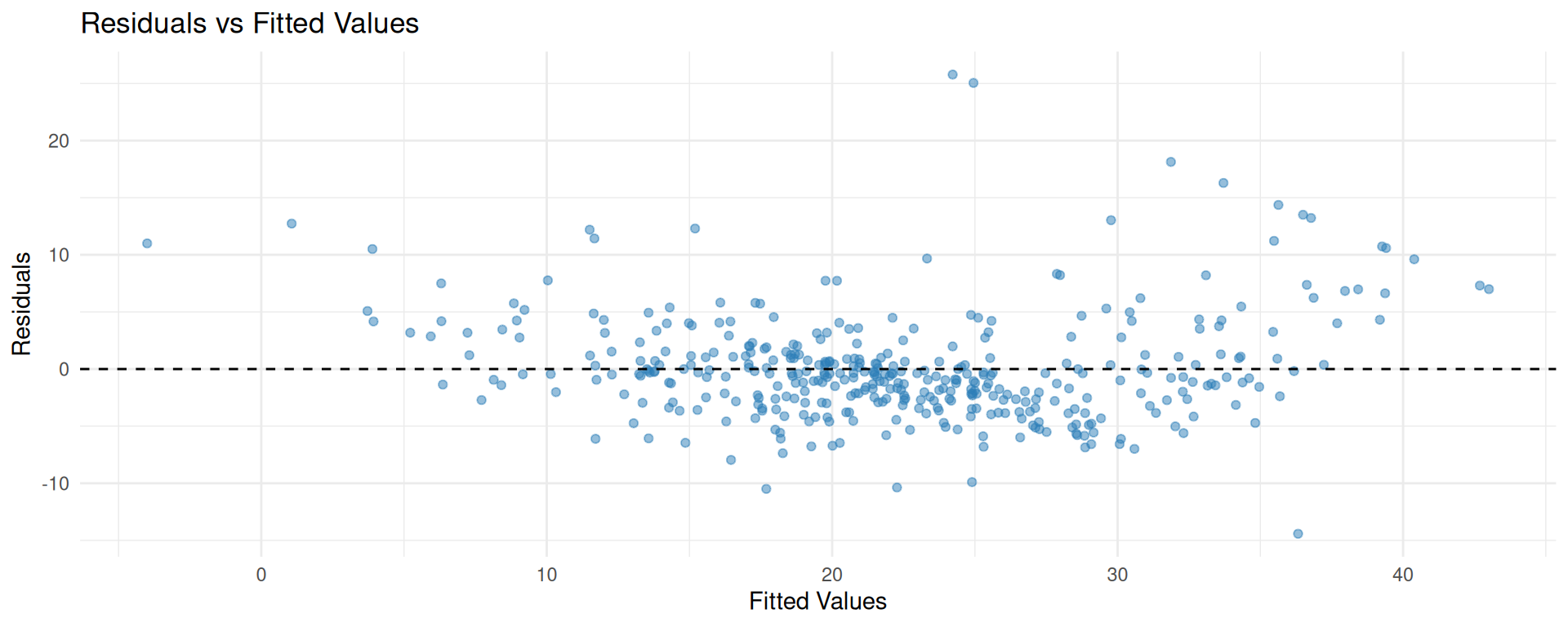 - Residual patterns may still reveal **non-linearity**, **heteroskedasticity**, or **influential outliers**.